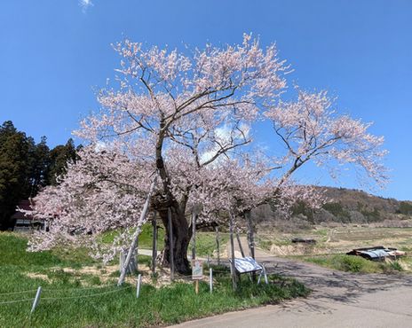 樹高6〜7メートルの形の良い桜が心を癒してくれます。鑑桜期には県内外から撮影者が訪れる知られざる穴場スポットです。
