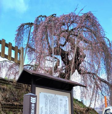 樹高20mにもなる巨木で、紅の濃い鮮やかな桜を咲かせます。樹勢が衰え、枯れ始めており、残念ながら以前のような優美な姿はもう観れない。